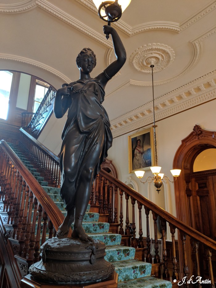 - Le rez-de-chaussée vous permet de voir la salle du trône ainsi que les salons de réception et la salle à manger. En entrant, le hall est dominé par un large escalier en bois de Koa, entouré d’une collection d’objets d’art en provenance de différents pays du monde ainsi que des portraits des souverains Hawaiiens. Le salon bleu à l’ambiance feutrée vous fera sourire avec l’immense portrait d’un notable Français – un poil narcissique comme cadeau pour un roi d’un autre pays, non? Ou etait-ce le moyen à l’époque d’envoyer son selfie à des amis? 🙂