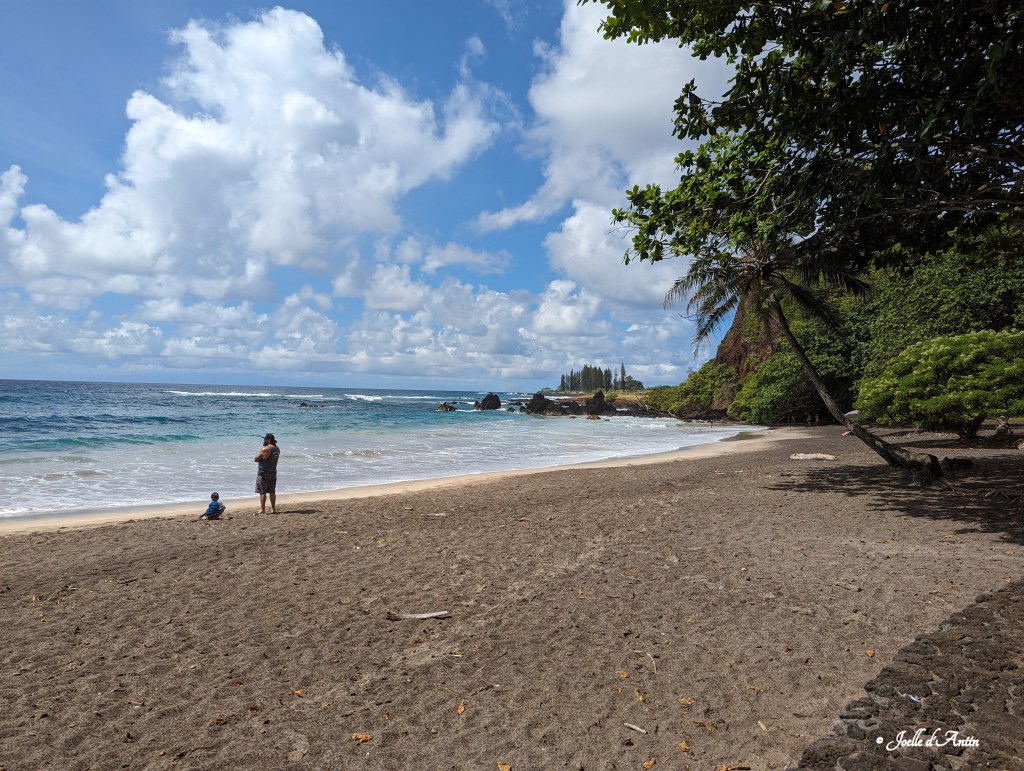 A 2 miles après le village d’Hana (Maui), cette plage de sable offre un joli panorama et des eaux claires.